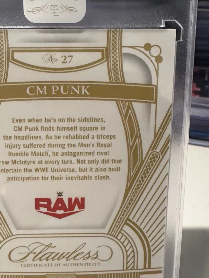 You're viewing: 2024 Panini Flawless WWE CM Punk #27 Diamond Gold 10/10 $224.99